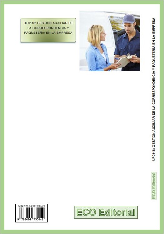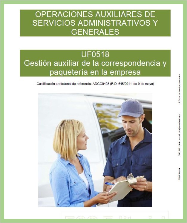 En concreto, este libro desarrolla la unidad formativa UF0518: Gestión auxiliar de la correspondencia y paquetería en la empresa, parte del Módulo formativo MF0969_1: Técnicas administrativas básicas de oficina.